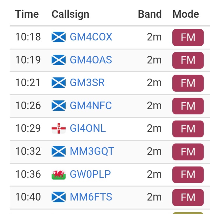 5w, Quansheng, slim-g at my end. Don was stronger, much stronger than the guys I worked in Glasgow. I also worked @GI4ONL Victor, who was very patient when I kept calling him GM4, because the signal was very weak.