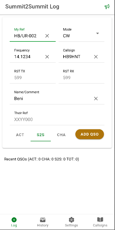 Or even more, you could add a swipe function to the left or right for switching between “Log” “History” “Settings” “Callsigns”