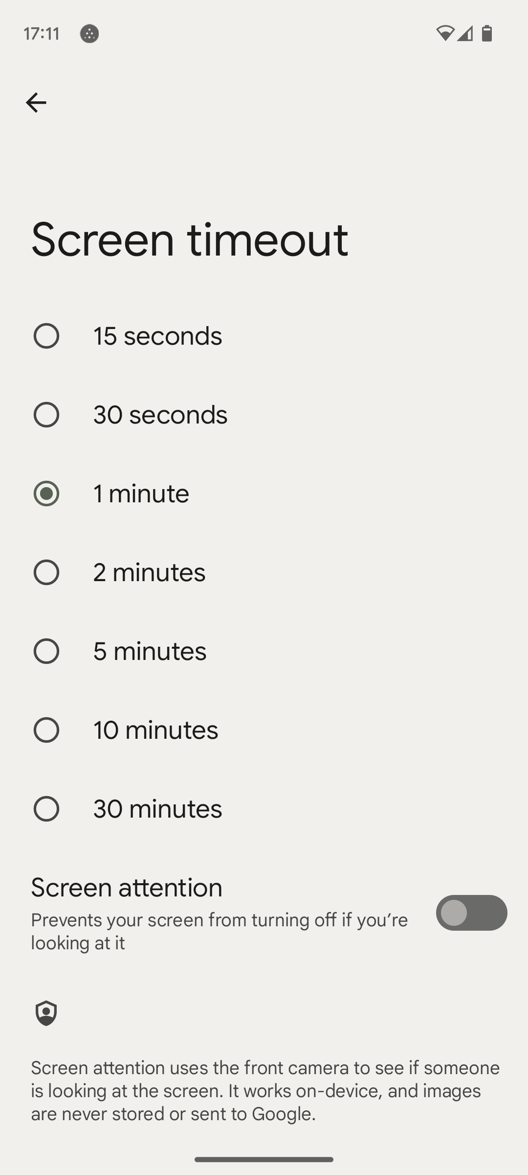 Android 13 has a keep screen alive function with preset values and even has a ‘staring contest’ function which is a bit freaky. All under the Display settings