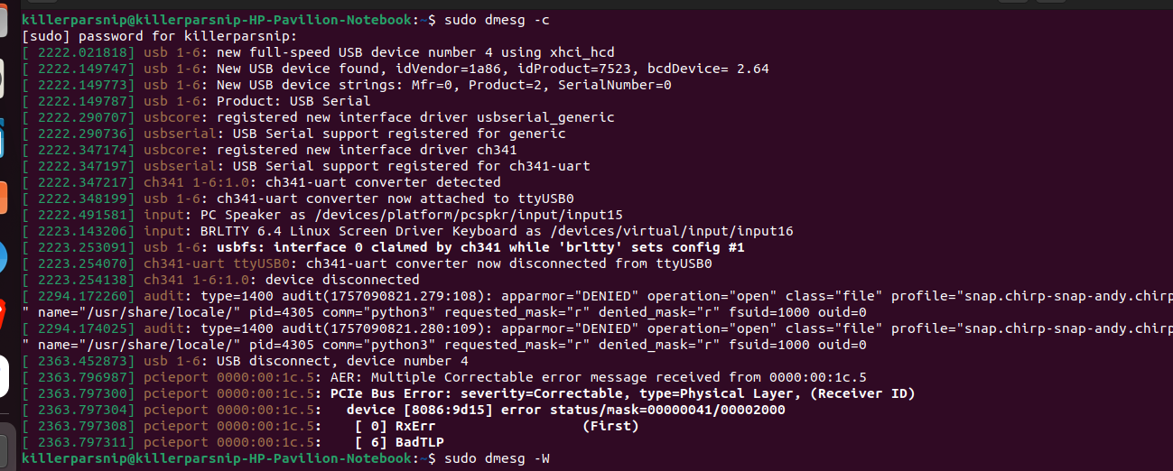 Anyway brltty is the culprit. You can see brltty trying to take over the UART causing the device to disconnect from the bus. Classic problem, disable brltty and /dev/ttyUSB0 will return and should work FB. The AER message is to do with Active State Power Management not working/being supported. It’s separate problem you can fix later on.