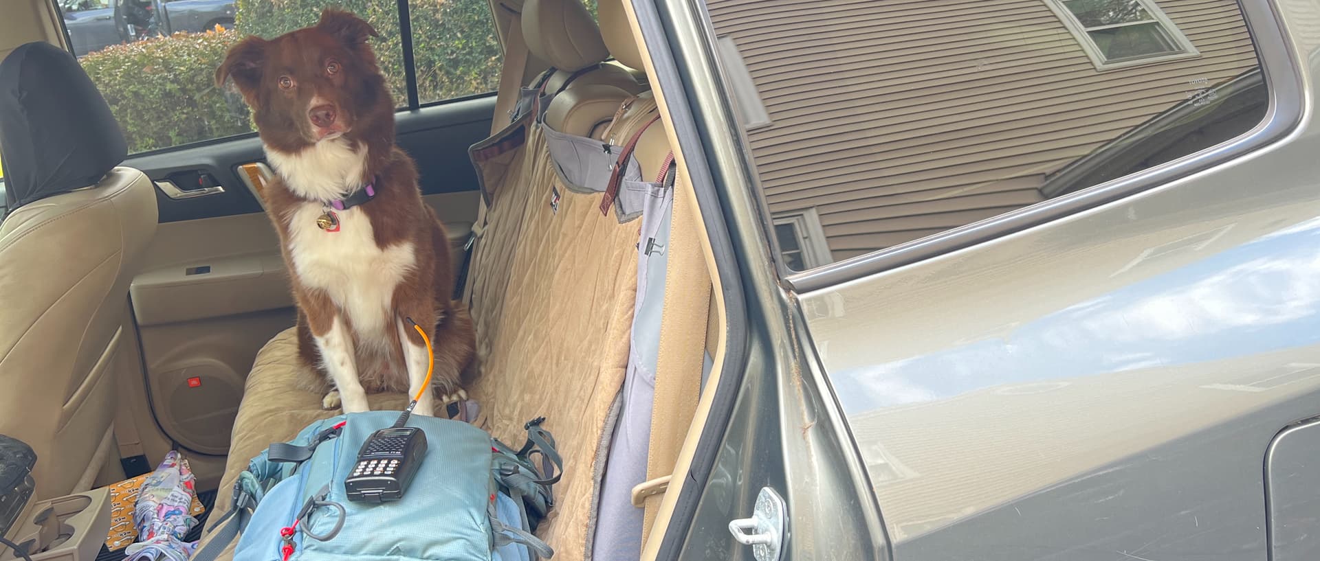 I packed the car first thing Saturday morning, however Crimson was not thrilled she wasn’t coming along..