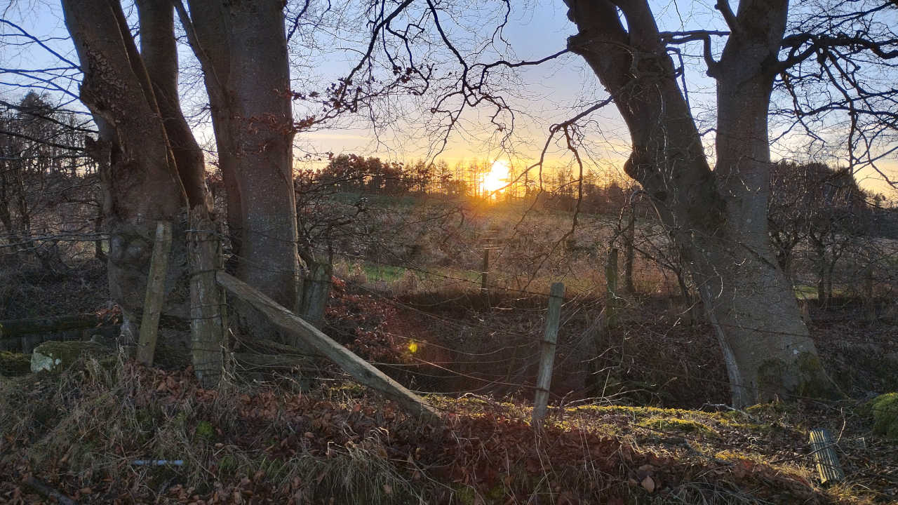 To put some context on how early it goes dark, here are 2 photos showing the setting sun yesterday whilst out “dogging”. It was a very nice sunny day.